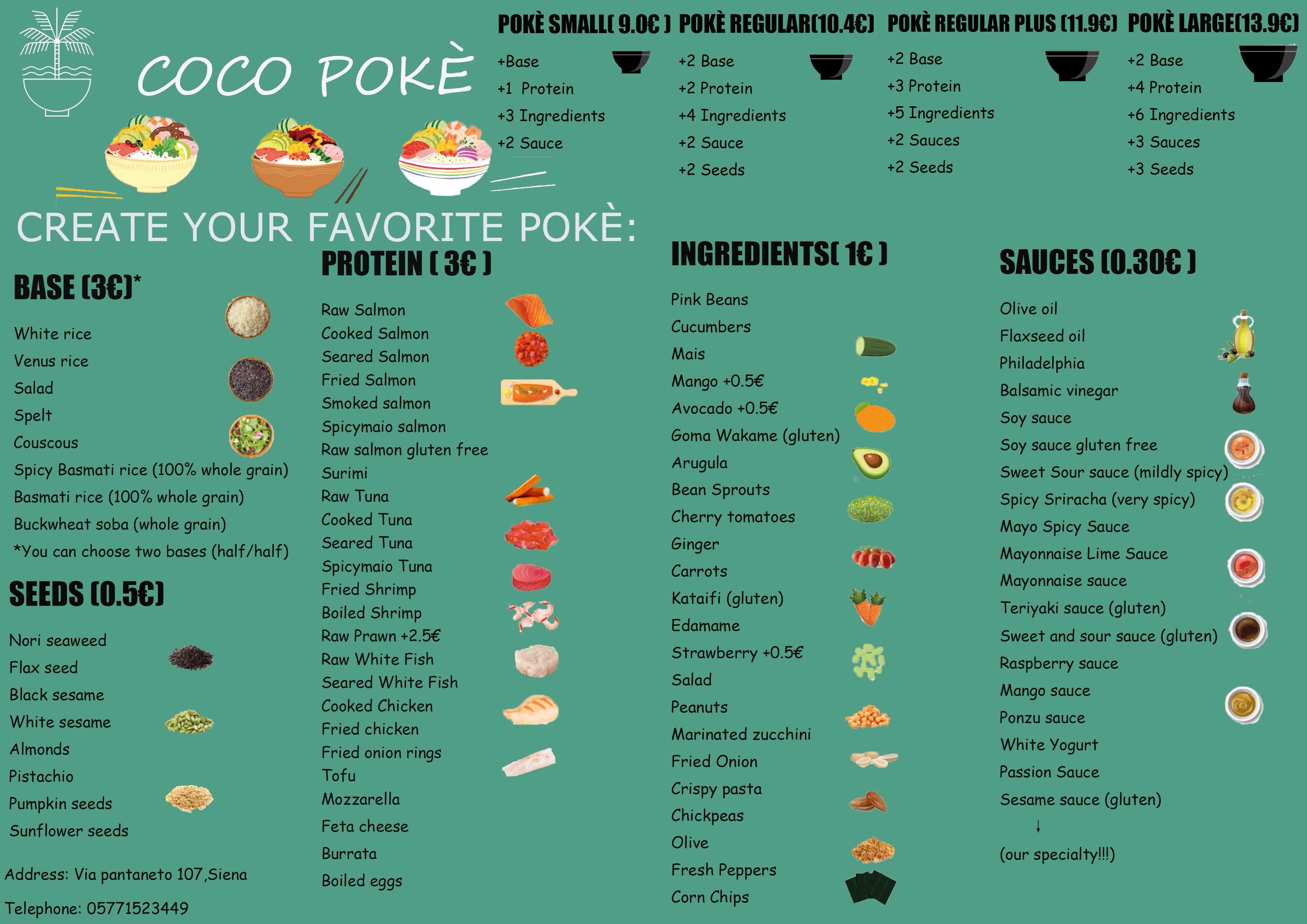 Per la prenotazione e l'ordine d'asporto o per consultare il menu' chiamare numero 05771523449 oppure mandare whatsapp al numero 3398795607
